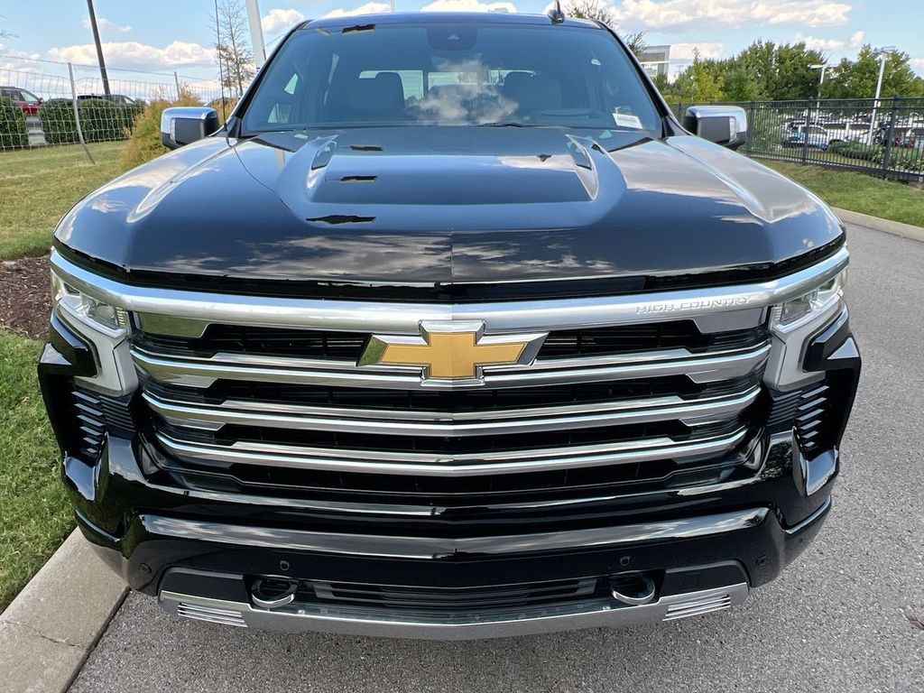 High Country Premium Package: Power Sunroof; 22" X 9" Painted Aluminum Wheels; P275/50R22SL AS BW Tires; All-Weather Floor Liner. Technology Package: 15" Diagonal Multicolor Head-Up Display; Rear Camera Mirror. Preferred Equipment Group 3LZ: Trailer Side Blind Zone Alert; Chrome Assist Steps; Driver Memory; Perforated Leather Seat Trim; SiriusXM with 360L Trial Subscription; Power Sliding Rear Window with Rear Defogger; Safety Alert Seat; Ultrasonic Front and Rear Park Assist; Trailer Camera Provisions; Electric Rear-Window Defogger; Theft Deterrent System (unauthorized Entry); Front Rain-Sensing Wipers; Heated Steering Wheel; 120-Volt Interior Power Outlet; Heated Driver and Front Outboard Passenger Seats; Front Bucket Seats; Color-Keyed Carpeting Floor Covering; OnStar Services Capable; 2nd Row Heated Outboard Seats; Power Front Passenger Windows with Express Up/down; Front Carpeted Floor Mats; Rear Carpeted Floor Mats; 12.3" Multicolor Reconfigurable Digital Display; Galvano Silver Painted Mirror Caps; Power Rear Windows with Express Down; Integrated Trailer Brake Controller; HD Surround Vision; Ventilated Driver and Front Passenger Seats; Power Tilt and Telescoping Steering Column; Keyless Open and Start; Perimeter Lighting; Auto-Dimming Inside Rearview Mirror; LED Cargo Area Lighting; Bluetooth For Phone; Remote Vehicle Starter System; In-Vehicle Trailering System App; 5.3L EcoTec3 V8 Engine; Floor Mounted Center Console; Bed View Camera; Rear Cross Traffic Braking; Trailering Package; Up-Level Rear Seat with Storage Package; Standard Tailgate; 2 USB Data Ports; Front LED Fog Lamps; Tire Pressure Monitoring System; Chrome Recovery Hooks; Steering Wheel Audio Controls; Teen Driver; Dual Rear USB Ports (charge Only); Adaptive Cruise Control; Universal Home Remote; 2-Speed Electronic Autotrac Transfer Case; Deep-Tinted Glass; 10-Way Power Driver Seat with Lumbar; Chevytec Spray-On Black Bedliner; Dual Exhaust with Polished Outlets; Chevy Safety Assist; Hitch Guidance with Hitch View; Power Front Windows with Driver Express Up/down; Wrapped Steering Wheel; Power Tailgate; Rear Pedestrian Alert; 10-Way Power Passenger Seat Adjuster with Lumbar; Outside Heated Power-Adjustable Mirrors; Rear Wheelhouse Liners; Auto-Locking Rear Differential. 22" X 9" Painted Aluminum Wheels. Power-Retractable Assist Steps. Power Sunroof. Adaptive Ride Control Suspension. Multi-Flex Tailgate. All-Weather Floor Liner. Wheel Locks (set of 4)